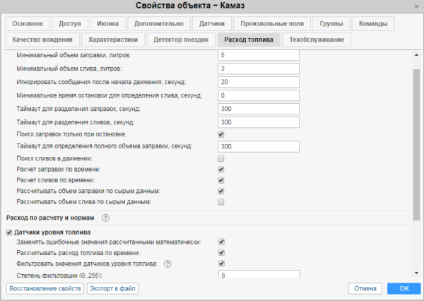95% датчиков контроля топлива устанавливаются в топливный бак и измеряют УРОВЕНЬ топлива в емкости. Это самый популярный тип датчика, применяемый в системах ГЛОНАСС-мониторинга. Датчиков объема топлива в баке не существует. Уровень – это высота, это не объем в литрах. Для пересчета уровня топлива в объем при установке датчиков применяется процедура тарировки бака, то есть определения зависимости объема топлива в баке от его высоты. Этот процесс имеет свои погрешности, которые никак не описываются описанием типа средства измерения. Все, что подтверждает сертификат средства измерения на датчики уровня топлива – что датчик измеряет высоту уровня топлива, и передает ее значение в бортовой ГЛОНАСС-терминал мониторинга. Что поступает с этой информацией далее? Она передается терминалом мониторинга на сервер системы мониторинга транспорта, который осуществляет пересчет уровня топлива в объем в соответствии с заполненными таблицами тарировки, осуществляет сглаживание данных, автоматический расчет заправок и сливов топлива, вывод графиков и отчетов на экран. После того как датчик-средство измерения предоставил нам данные – любые операции над данными с помощью несертифицированного оборудования обнуляют этот статус. Все могут видеть, что объемы заправок и сливов топлива, цифра расхода топлива автомобилем за период могут зависеть от настроек программного обеспечения системы мониторинга!